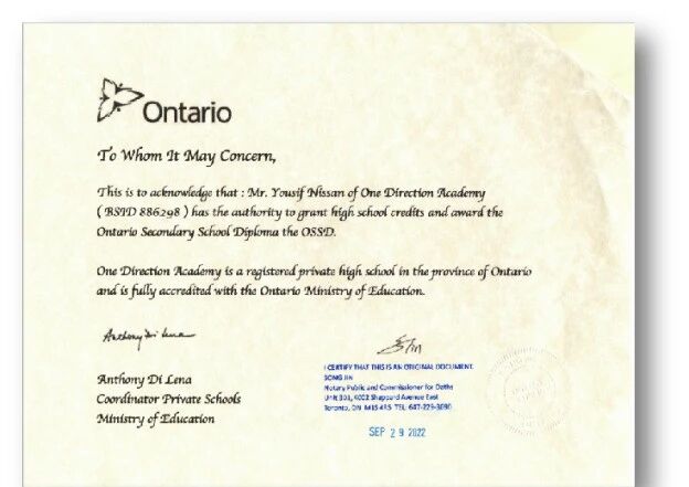 新航道与加拿大安省实体中学One Direction Academy(ODA)独 家合作,校号BSID#886298,具备实体授课和线上教学双资质,是国内少有的“三年免检”认证校区。