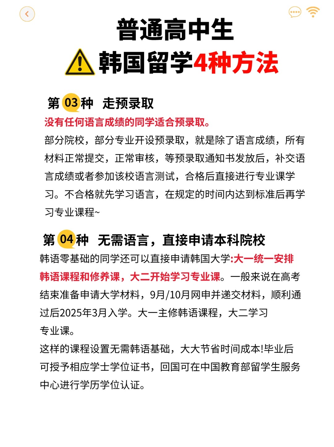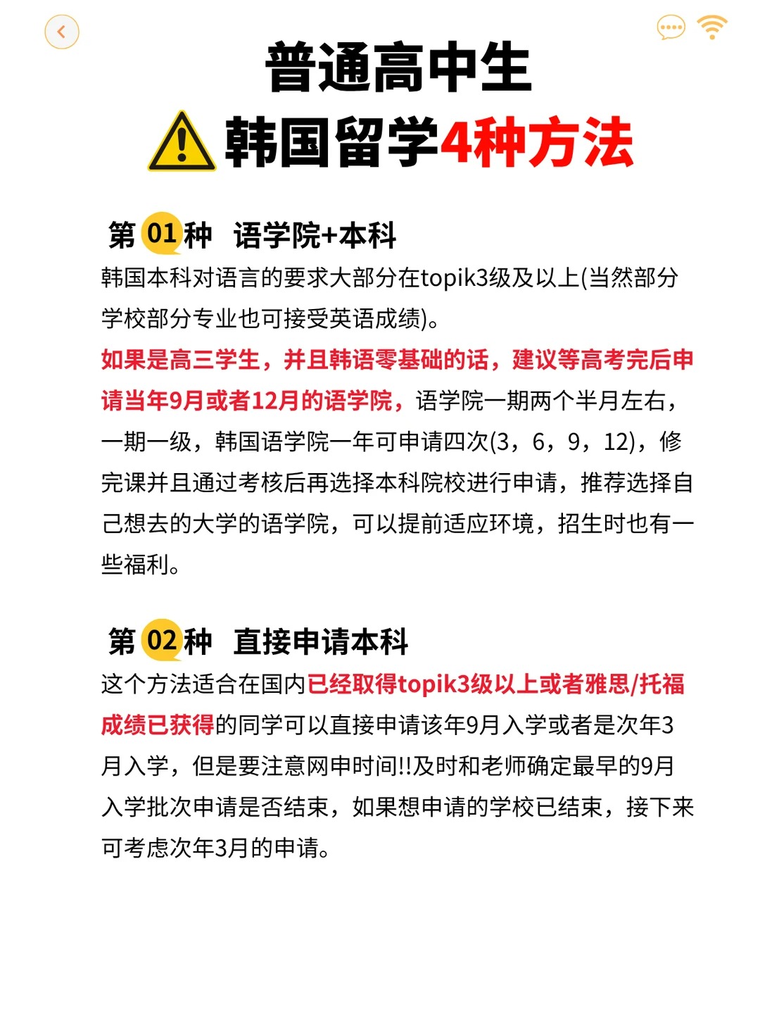 2、直接申请本科 适合人群:已有Topik3级/雅思/托福成绩 ; 申请时间: 当年9月或次年3月入学(紧盯网申截止时间!) 注意:部分专业要求更高