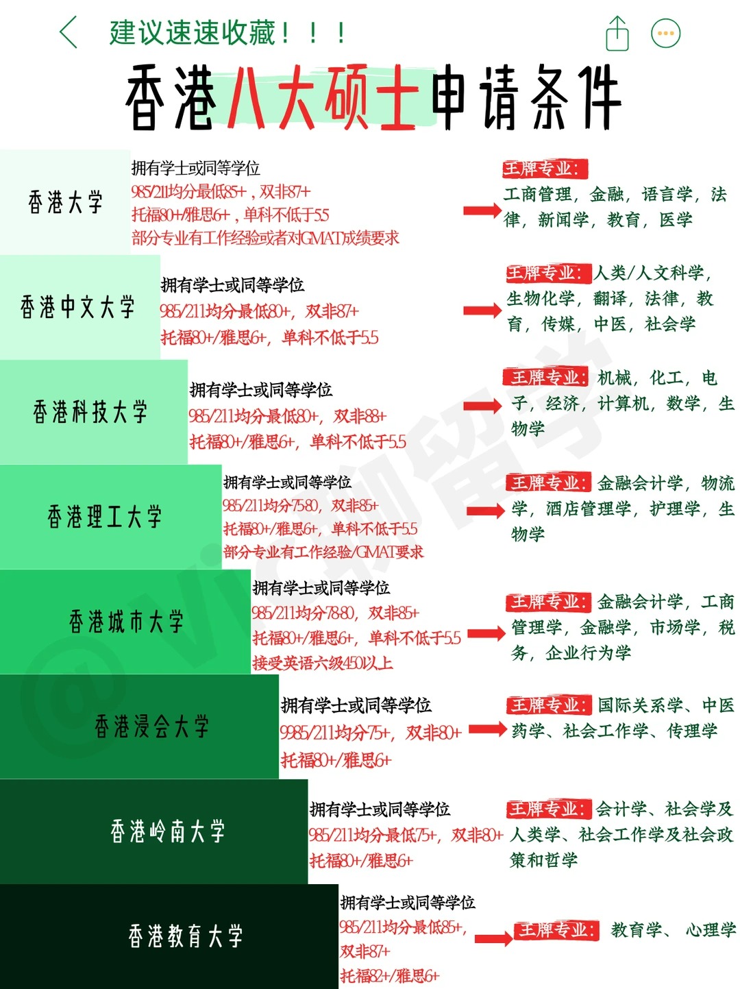 摘要:最近看到好多同学在为香港硕士申请焦头烂额,各种问题层出不穷,所以今天给大家整理一篇港八大硕士申请的详细要求,看看你的成绩能申请哪个院校呢?