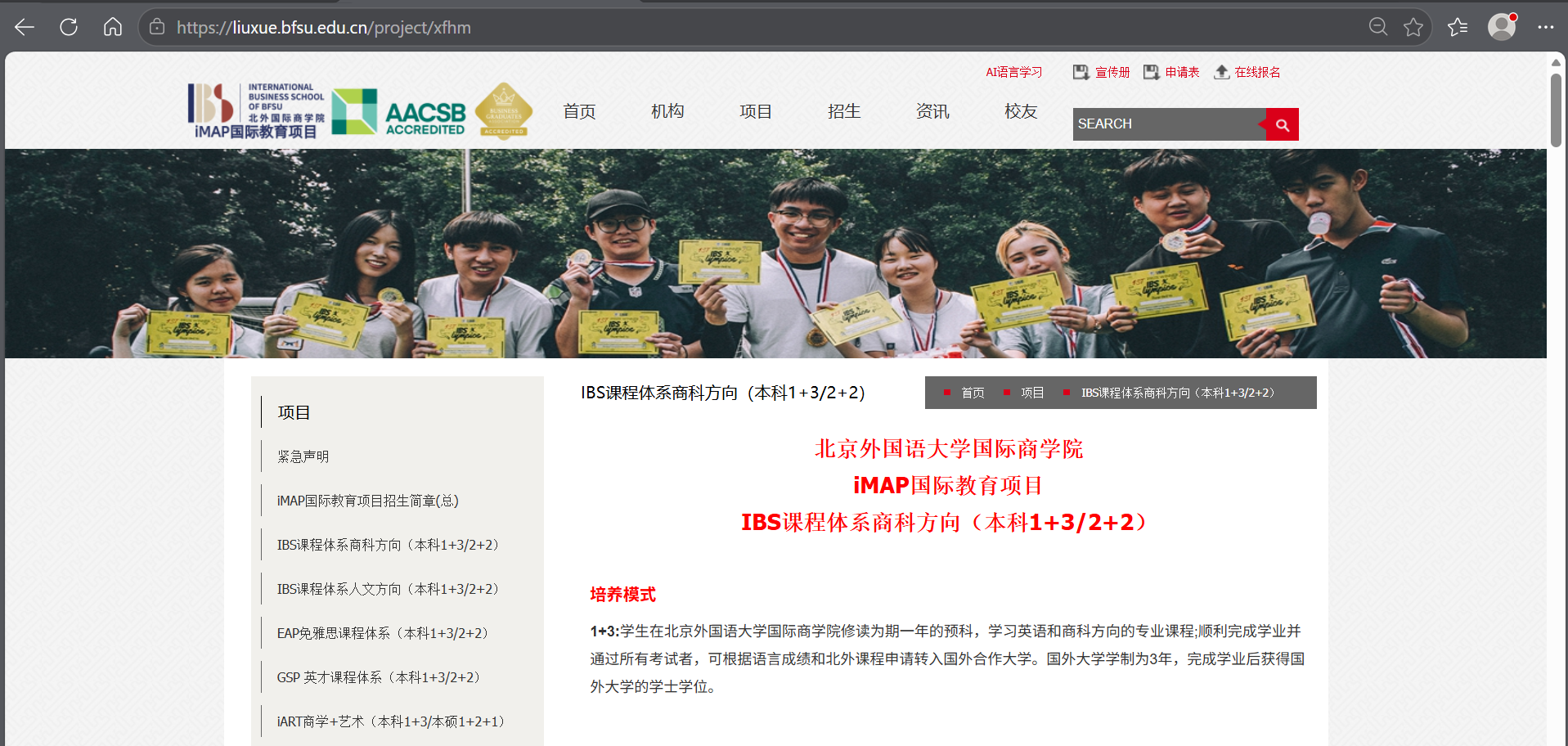 进入北京外国语大学校本部,就读国际商学院iMAP项目IBS专业课程。北外教师全英授课,沉浸式体验211高校的国际化教学氛围。