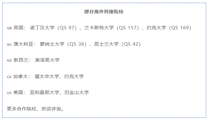 项目衔接英国、美国、澳大利亚、加拿大、新西兰等多国优质院校。