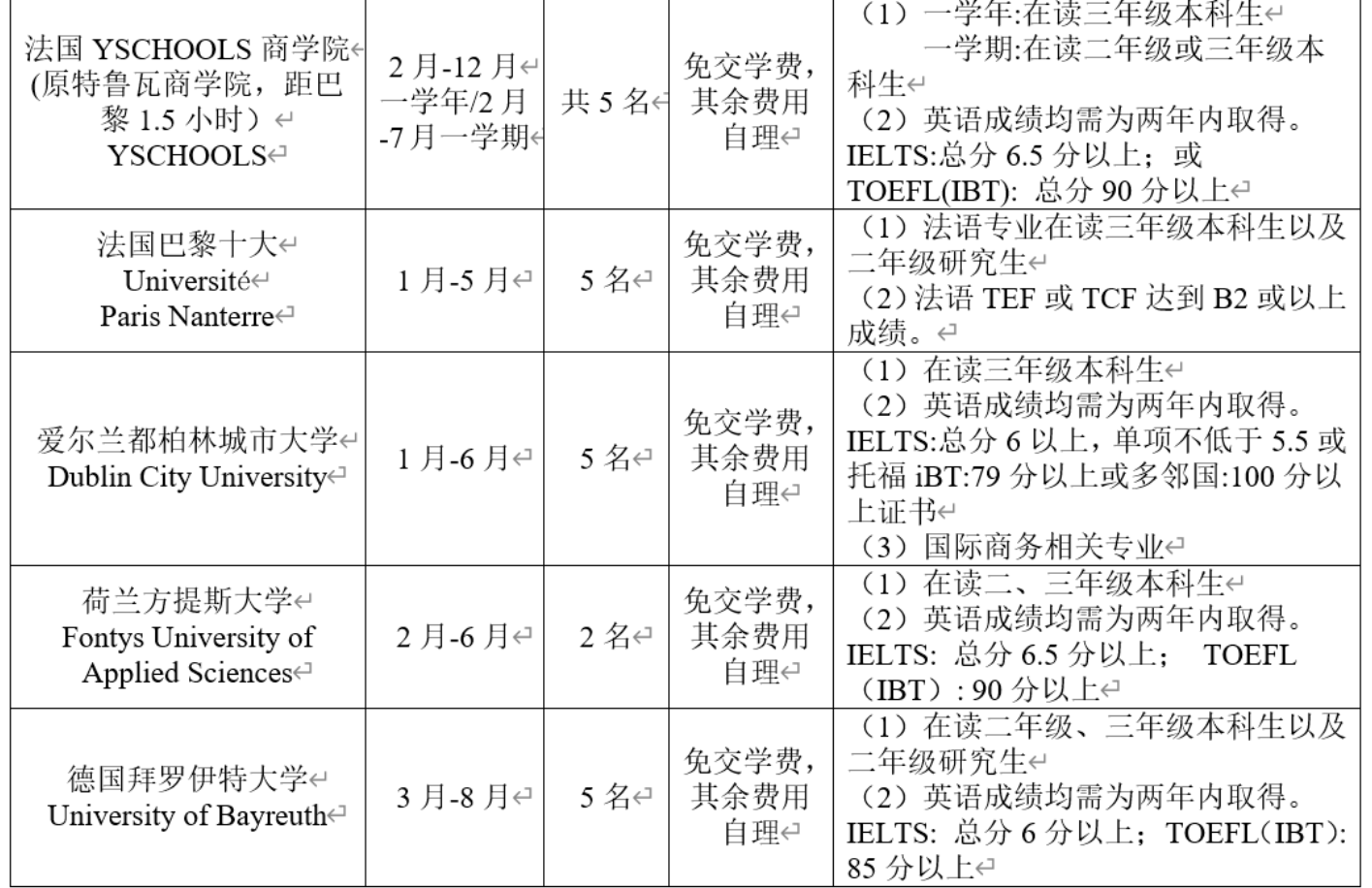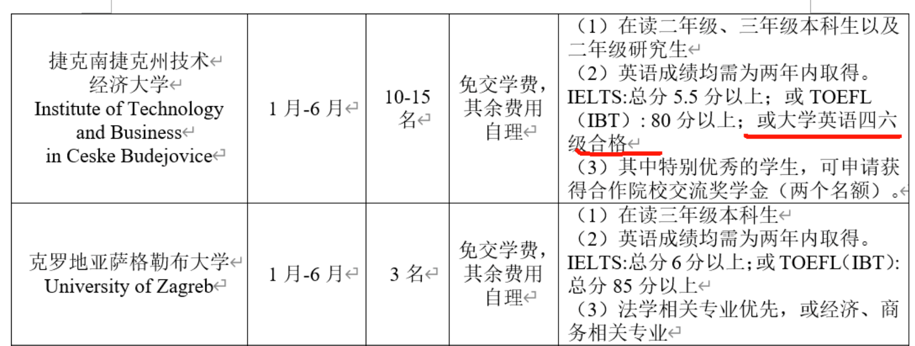 满足部分院校海外交流生选拔条件
