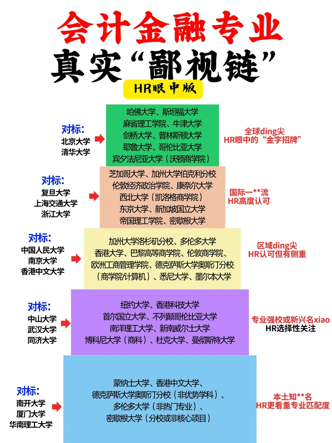 今天从HR角度盘点了会计金融专业院校“鄙视链”信息,仅供参考。