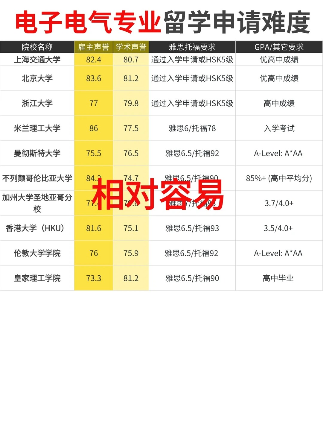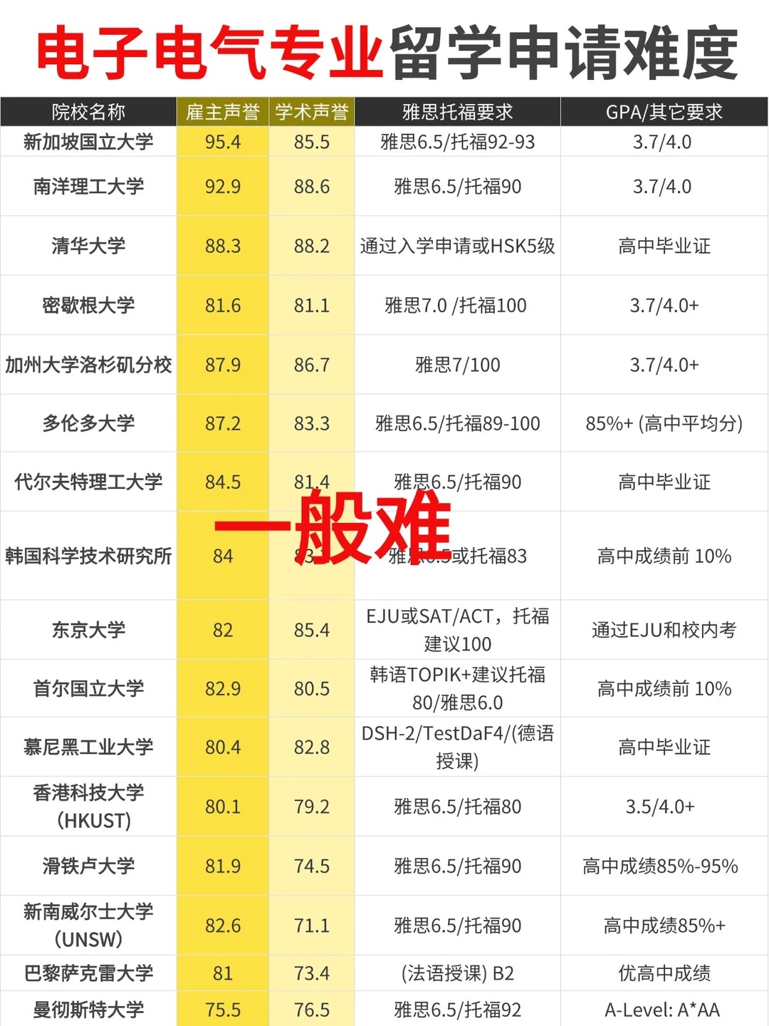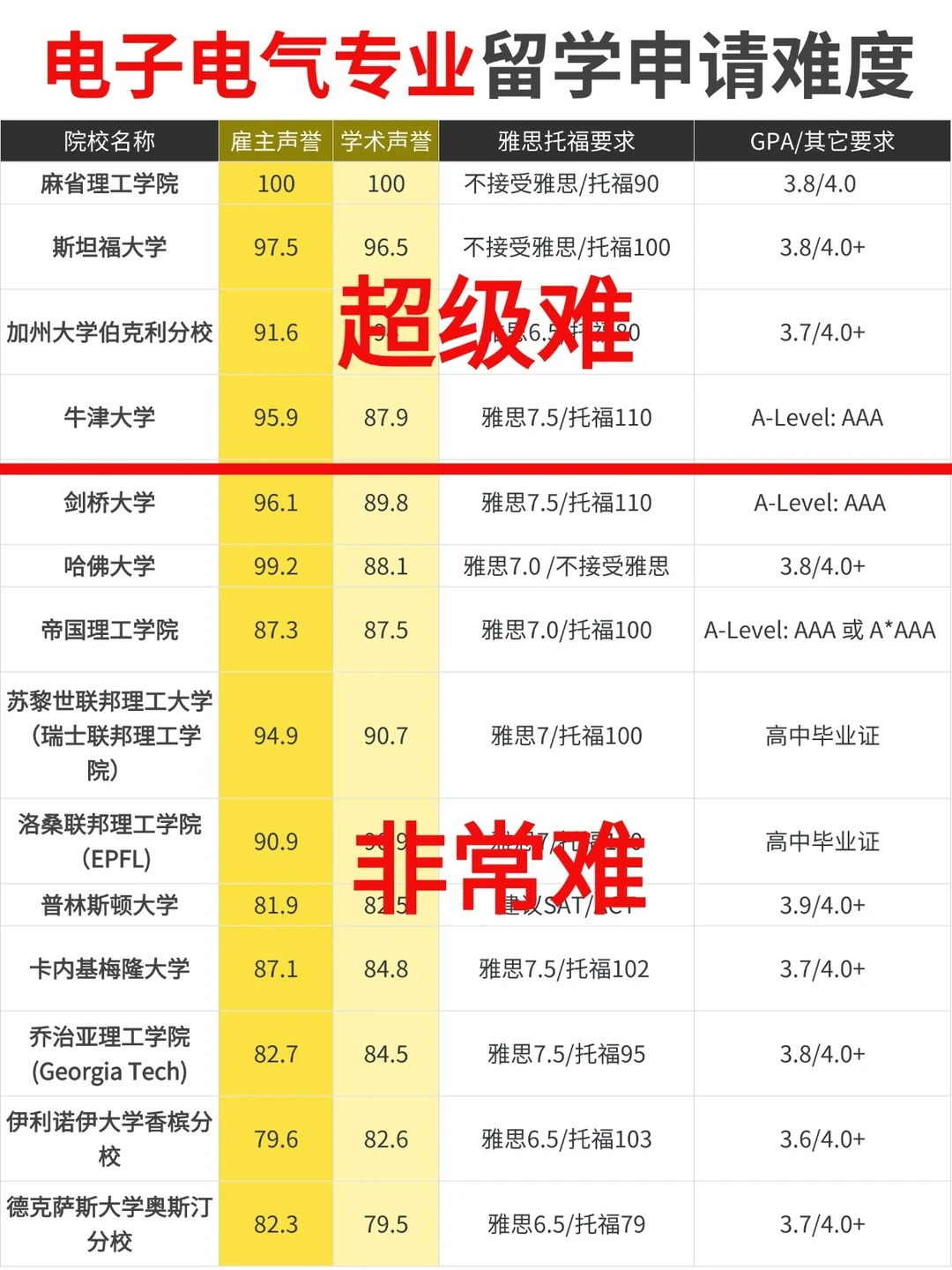 今天盘点了电子电气工程(EE)留学院校申请难度梯队信息, 留学想申请电子电气工程专业的宝子可以详细看看!仅作参考!