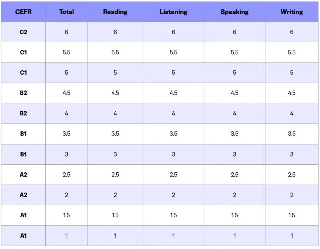 新托福与CEFR等级对照表