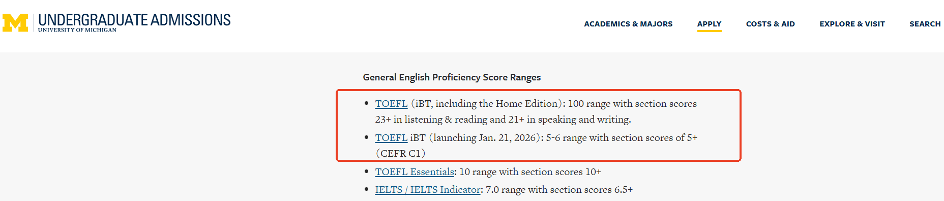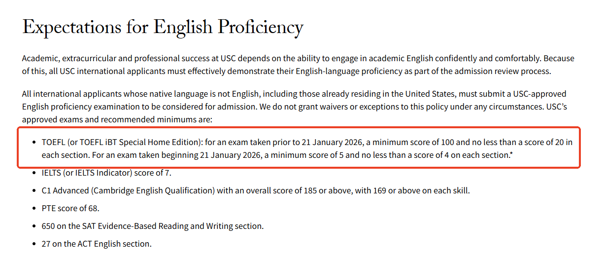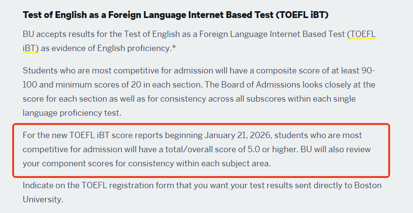 最 低要求:90分至100分,各单项不低于20分。招生委员会将综合审查各项分数。